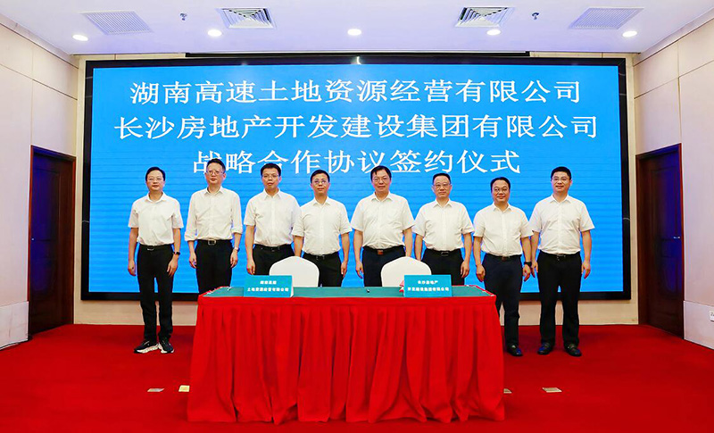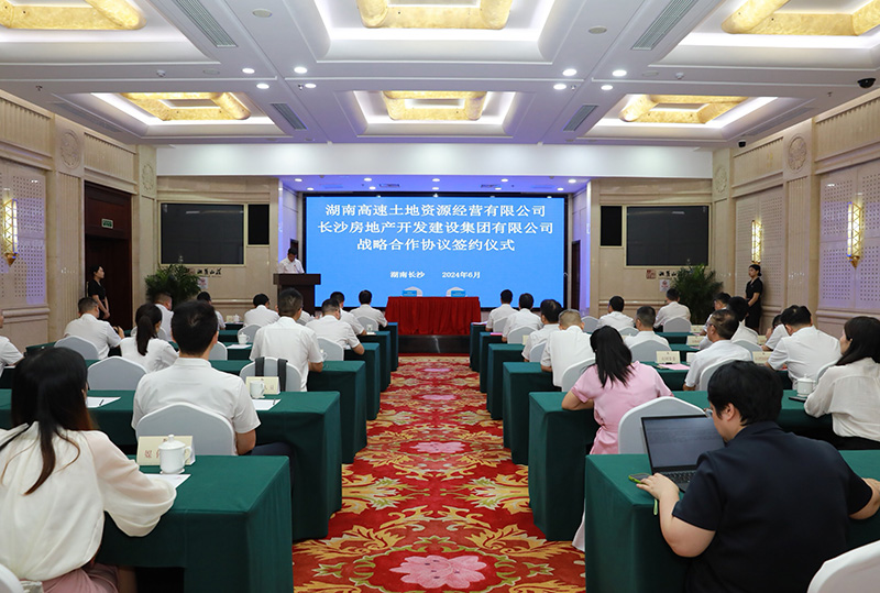 ??? 2024年6月20日上午,長房集團與湖南高速土地公司簽署戰(zhàn)略合作協(xié)議。市委常委、常務(wù)副市長彭華松,湖南高速集團黨委書記、董事長羅衛(wèi)華出席簽約儀式并講話。副市長周志凱,湖南高速集團黨委委員、總會計師汪小平,總經(jīng)濟師譚紹富,市國資委黨委書記、主任黃陽共同見證簽約儀式。長房集團黨委書記、董事長胡磊與湖南高速土地公司黨支部書記、董事長張懷宇代表雙方簽約并致辭,市財政局、市自然資源規(guī)劃局、市住建局、市國資委、市政府研究室、開福區(qū)政府相關(guān)領(lǐng)導(dǎo)及長房集團、高速土地公司部分班子成員參加儀式。