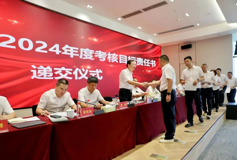 ??? 會上,集團(tuán)新選聘到位的9家二級經(jīng)營單位主要負(fù)責(zé)人向集團(tuán)黨委書記、董事長胡磊遞交2024年度考核目標(biāo)責(zé)任書。
