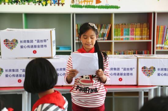 在長房集團藍絲帶愛心書屋掛牌暨圖書捐贈儀式現(xiàn)場,長沙市青少年發(fā)展基金會副理事長胡朝軍講到,長房集團為鄉(xiāng)村學(xué)子送上了精神食糧,是響應(yīng)精準(zhǔn)扶貧政策的具體體現(xiàn),彰顯了企業(yè)高度的社會責(zé)任感,希望學(xué)校充分利用愛心書屋幫助孩子們增長知識、拓寬眼界。受贈學(xué)校校長表示,一定會愛惜和用好愛心書屋,使書屋成為孩子們求學(xué)追夢途中的加油站。孩子們說有了“愛心書屋”之后,學(xué)校每周專門開了兩節(jié)閱讀課,讓他們在書屋自由閱讀,沒讀完的書可以申請借回家閱讀,閱讀課已經(jīng)成為他們最喜歡的課程。